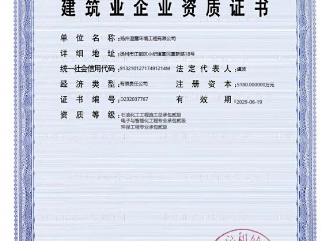 公司“石油化工工程施工總承包”資質(zhì)由叁級(jí)順利升級(jí)為貳級(jí),同時(shí)“電子與智能化工程專業(yè)承包貳級(jí)”、“環(huán)保工程專業(yè)承包貳級(jí)”、“工程設(shè)計(jì)環(huán)境工程水污染防治工程乙級(jí)”三項(xiàng)資質(zhì)延期順利通過。